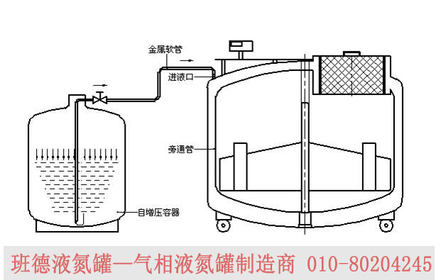 補(bǔ)給罐與氣相液氮罐之間采用法蘭真空軟管柔性連接